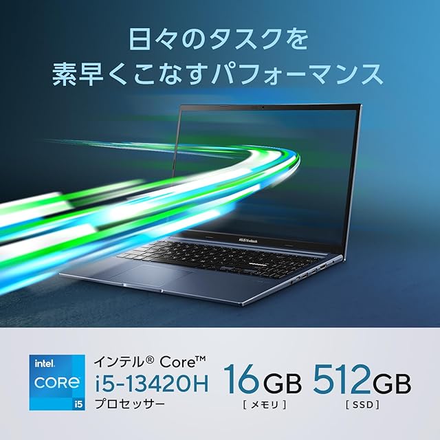 商品名:《新品未開封》ASUS ノートパソコン Vivobook 15 X1502VA 15.6インチ インテル Core i5 13420H メモリ16GB SSD 512GB Windows 11 バッテリー駆動 8.9時間 重量 1.7kg PC Game Pass 3ヶ月利用権付き クワイエットブルー X1502VA-I5H165W