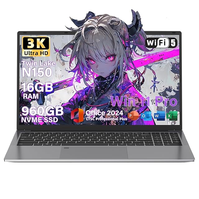 《新品未開封》SERYUB Office 2024搭載ノートパソコン 16インチ 3K(3072×1920) インテル N150登場 (N100&N97より速い 4コア/4スレッド 最大3.6GHz パソコン 180°開閉可能 DDR4 16GB+NVME 960GB SSDノートPC Windows11対応 RJ45/USB 3.0/TYPE-C 学生&初心者向け