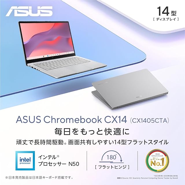 《新品未開封》ASUS Chromebook クロームブック CX1405CTA 14インチ インテル N50 8GB メモリ 64GB eMMC バッテリー駆動 11時間 重量1.38kg 日本語キーボード ゼロタッチ登録対応 Wi-Fi 6 ピュアグレー CX1405CTA-S60592/A