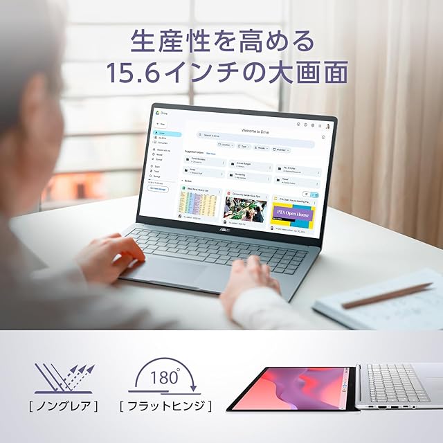 【OS】ChromeOS【カラー】ピュアグレー【ディスプレイ】15.6型ワイドTFTカラー液晶、ノングレア、1,920×1,080ドット (60Hz)【本体サイズ】幅359.5mm×奥行き232.2mm×高さ20.1mm 約1.59kg