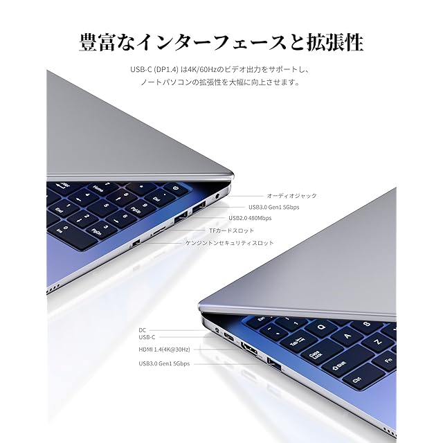 内蔵ウェブカメラ、WiFi 5、Bluetooth 5.0、HDMI、USB 3.2(5Gdps)、Type-C、TFカードリーダー、マイク/ヘッドホン出力端子