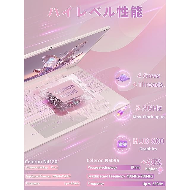 【パワフルなパフォーマンスで生産性を向上】この軽量ラップトップは、4コア、2.8GHzの最大速度を持つCeleron N5095プロセッサを使用しています。これは簡単に滑らかで反応の良いユーザーエクスペリエンスを提供するWebを閲覧しながら、同時に編集またはバックグラウンドで実行されているタスクをダウンロードするために開かれた複数の文書を処理することができます。仕事、勉強、またはブラウジングに最適です。