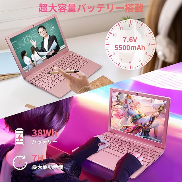 《新品未開封》ノートパソコン10.1インチ Office2024付き (Celeron N4000 / 8GB, 128~512GB / 約0.7kg / Webカメラ/Windows 11 /初期設定不要/タッチパッド付き/狭額縁/800*1280 IPS)/ワイヤレスマウス付き/学習用仕事用/初心者向け (ピンク, 512GB)