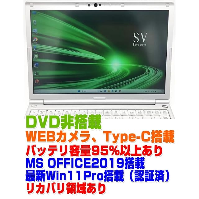 型番:CF-SV8<br> CPU:インテル Core i5-8365U 1.6GHz(4コア8スレッド、インテルターボ・ブース ト・テクノロジー2.0利用時は最大4.10GB)<br> メモリ:8GB<br> SSD:(M.2規格、リカバリ領域あり、回復手順あり)<br> ディスプレイ:12.1インチ WUXGA 解像度 1920x1200<br> 光学ドライブ:非搭載<br> サウンド:スピーカー内蔵<br> Webカメラ:搭載<br> その他装備:無線LAN、SDカードスロット、HDMI、Bluetooth、USB3.0<br> OS:最新Win11Pro搭載(認証済)<br> Officeソフト:MS OFFICE2019(正規認証済み・メディアはなし)<br> ウイルス対策:Windows Defender、Windowsファイアウォール<br> 寸法/質量:幅283.5mm×奥行203.8mm×高さ25.3mm 重さ約929g<br> 付属品:純正ACアダプタ、電源コード<br><br> リカバリ:リカバリ領域が付属です、しかも回復手順も付きます。もしもの時、ワンストップで僅か15分間を待つだけ、OSのリカバリができます。安心です。<br> OSのリカバリ後、MS OFFICE2019も影響なく使えます。ぜひご購入をご検討ください。<br> <br> 「について」<br> 商品到着後に何か不都合がございましたら当ストアへお問い合わせください。当ストア担当が、誠心誠意対応させていただきますので、ご安心ください。<br> 弊社が販売している該当商品は整備済み、品質があります。同梱のACアダプタは純正品となり、警告メッセージが出ません。<br> <br> 商品の説明<br> 弊社はGTネオスと申します。<br> のサイトにて掲載している「ネオスミライ」のロゴマークと品名は 既に弊社で「商標登録済」になっております。<br> 類似品名・ロゴの無断掲載は商標権の侵害なりますので、ご承知おき下さい。<br> 商標権侵害が確認出来た場合には、<br> その商標を使用されたことで被った損害の賠償請求損害賠償請求や、<br> 不法にその商標を使用して得た利益を返還するように請求する不当利得返還請求、<br> 商標の無断使用によってブランドに傷をつけたことについて世間に公表し謝罪主張する信用回復措置請求を行う場合が御座いますので、<br> 警告させて頂きます。<br>