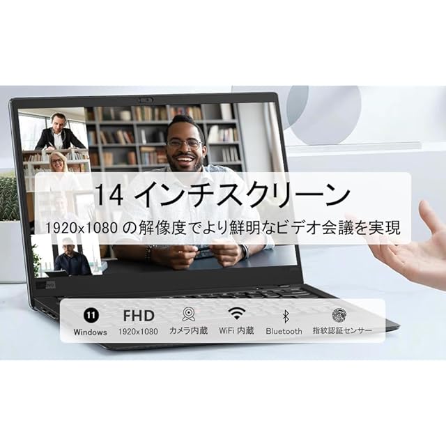 LEDバックライト付 14.0型 FHD IPS液晶 (1920x1080ドット) 、WiFi、Bluetooth、Webカメラ、USB Type-C、指紋センサー、HDMI