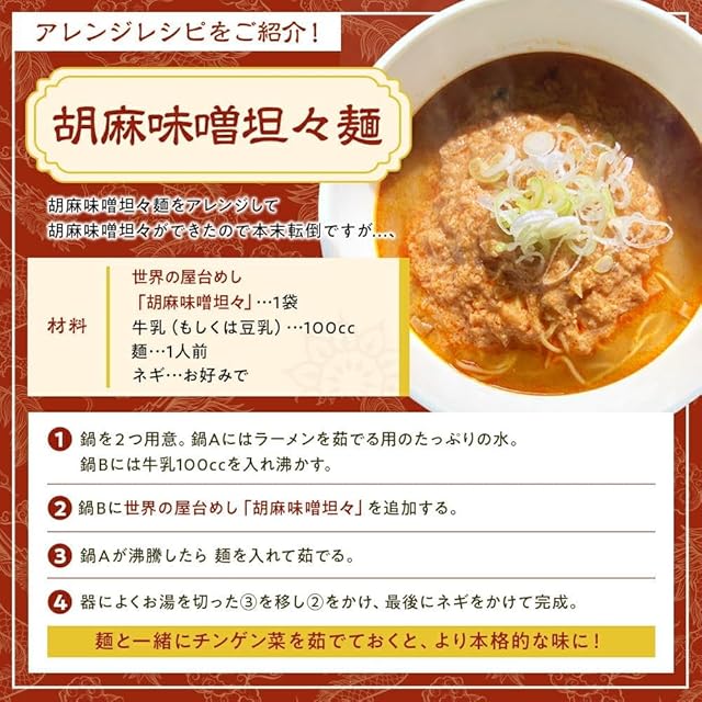 商品名:《新品未開封》世界の屋台めし 胡麻味噌担々(180g×2袋)(中国・四川省の屋台飯)レトルト 坦々スープ インスタント 手軽 簡単 インスタント(常温便)