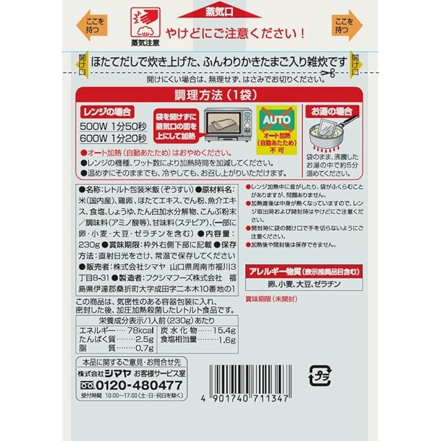 商品名:《新品未開封》シマヤ 昔ながらの雑炊 ほたてだし仕立て 230g×10個