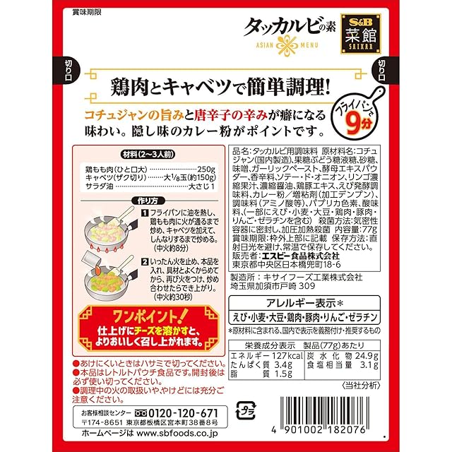 商品名:《新品未開封》S&B エスビー食品 菜館 タッカルビの素 77g ×5個【時短調理】