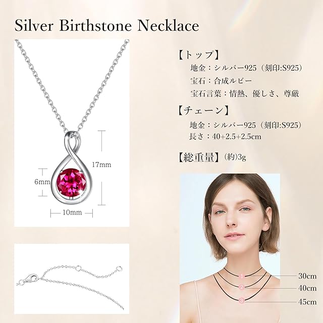 【7月誕生石】 身に着けていると幸せを運んでくれると言われている誕生石です。「ぜひ幸せになってください」という想いは、相手にちゃんと届けてお守りして、二人の絆を深めることになるのでしょう。7月の宝石はルビーとなり、情熱、優しさ、尊厳を意味します。記念日、成人式、誕生日や母の日に彼女、友達、母、妻や娘などにおススメのプレゼントです。