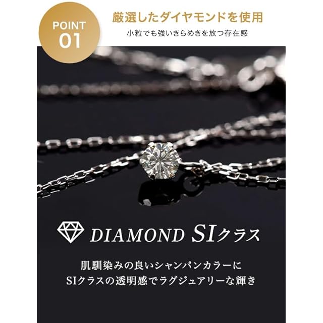 【厳選された天然ダイヤモンド】鑑定士が輝き・テリの良いダイヤを厳選してお届け。控えめな煌きがさり気なくも美しい、シンプルなダイヤモンドネックレス。10金素材×一粒ダイヤモンドの煌めきは特別な贈り物に人気。