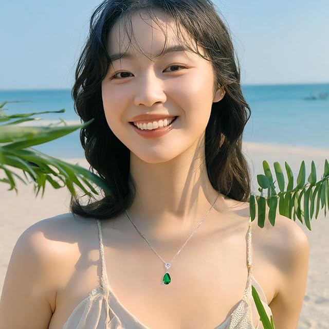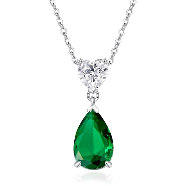 商品名:《新品未開封》[FANCIME] 誕生石 ネックレス レディース 5月 誕生石 エメラルド しずく ハート モチーフ ジルコニア シルバー ペンダント S925 お守り石 アクセサリー クリスマス 誕生日 プレゼント ギフト ご褒美 ラッピング付き