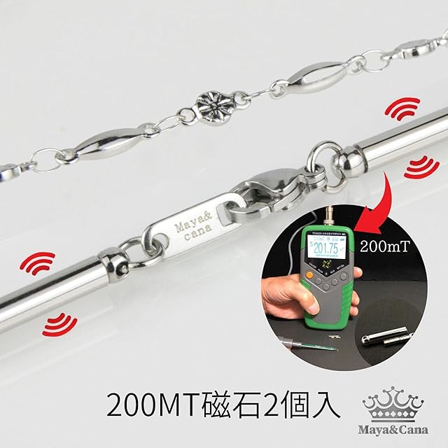 《新品未開封》[MAYA&CANA] 磁気ネックレス レデイース おしゃれ 200mt 磁気2個 サージカル ステンレス ネックレス チェーン 45cm ギフトボックス付き (シルバー)