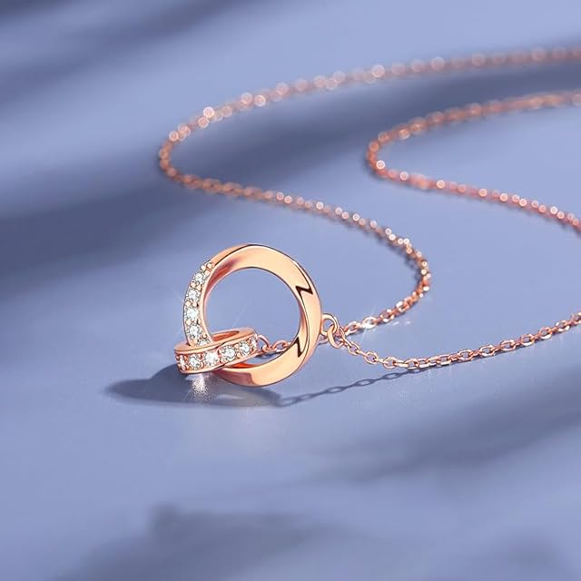 【デザイン】ネックレスは2つの円で構成されており、そのうちの2つは無限の愛を象徴するメビウスです。 少し明るいジルコンが気質にポイントを加え、魅力的な光とロマンチックな雰囲気を作り出し、時間が美しく、あなたと絡み合っています。二人の愛が繋がっていることをイメージさせるデザインです!離れていても、いつもお互いの存在を近くに感じられるネックレスに仕上がっております!