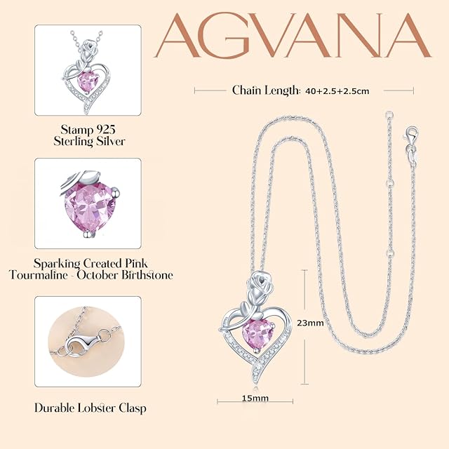 商品名:《新品未開封》[AGVANA] ネックレス レディース ピンクトルマリン 10月 誕生石 薔薇 ローズ モチーフ ハートネックレス シルバー ジュエリー アクセサリー クリスマス 誕生日 記念日 プレゼント ラッピング用品付き