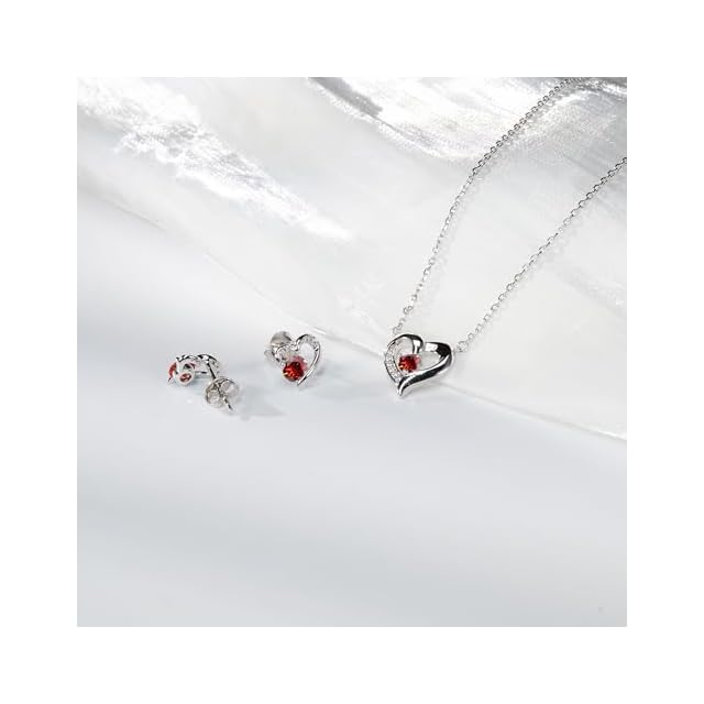 《新品未開封》[FH.bird] ガーネット ネックレス ピアス レディース セット 「ラブストーン」シルバー925 金属アレルギー対応ピアス 高校生 女子 赤い ネックレス ハート 錆びない 1月诞生石 クマのキーホルダー クリスマスプレゼント 女性 人気 20代 30代