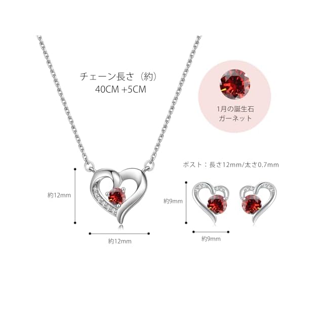 商品名:《新品未開封》[FH.bird] ガーネット ネックレス ピアス レディース セット 「ラブストーン」シルバー925 金属アレルギー対応ピアス 高校生 女子 赤い ネックレス ハート 錆びない 1月诞生石 クマのキーホルダー クリスマスプレゼント 女性 人気 20代 30代