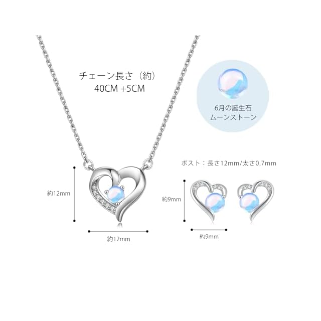 商品名:《新品未開封》[FH.bird] ムーンストーン ネックレス ピアス レディース セット 6月诞生石 ペンダント「ラブストーン」シルバー925 金属アレルギー 錆びないネックレス ハート ピアス クリスマス 誕生日プレゼント女性 人気 20代 アクセサリー