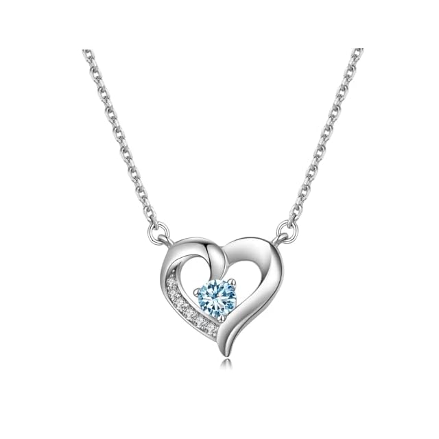 《新品未開封》[FH.bird] アクアマリン ネックレス レディース ハート「3月の誕生石」 シルバー925 アレルギー対応ネックレス 水色 誕生石 可愛いです 日常使い 入学式 成人式 誕生日 クリスマスプレゼント (合成アクアマリン/3月の誕生石)