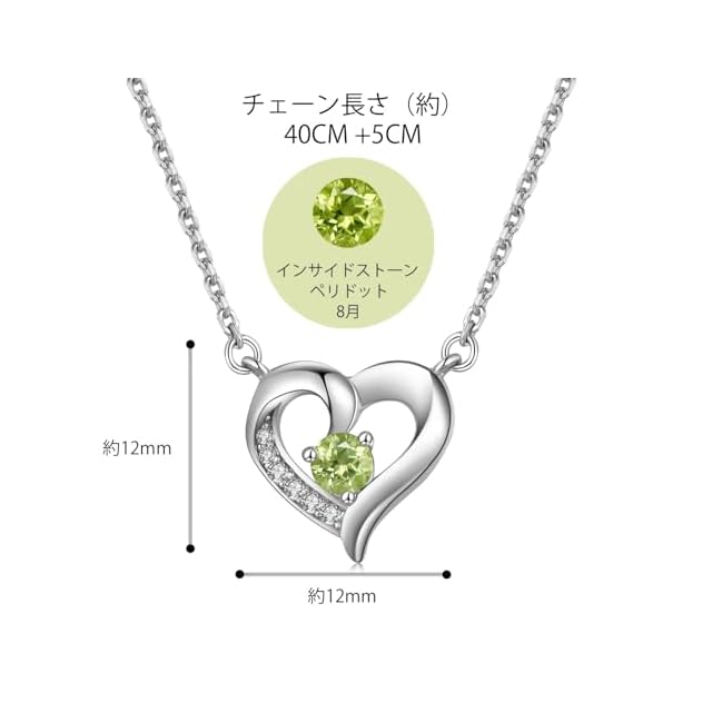 商品仕様: 素材:シルバー925,主石:8月诞生石 ペリドット(約0.15 ct)。 ペンダントトップ:(約)横12 mm×縦12 mm 。チェーン長さ:(約)40~45 cm(5 cmアジャスター付)付属品:精美な包装ケース、高級ベロア調ポーチ 、専用磨きクロス