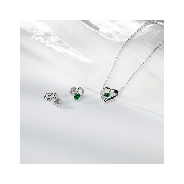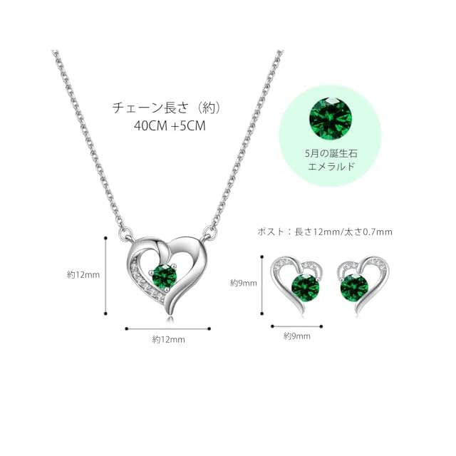 《新品未開封》[FH.bird] エメラルド ネックレス ピアス レディース セット 5月诞生石「ラブストーン」シルバー925 金属アレルギー対応 ネックレス 錆びない グリーン ハート ピアス 5月誕生日 クリスマスプレゼント 女性 人気 30代 20代
