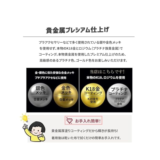 貴金属メッキ:貴金属メッキを施し、独特の光沢と質感を実現。銀本来の軽やかさを保ちつつ、貴金属の豪華さを加えています。このメッキ層により耐摩耗性と耐酸化性が向上し、耐久性が高く変色しにくい仕様となっております