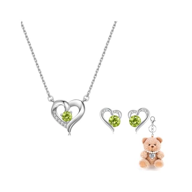 《新品未開封》[FH.bird] ペリドット ペンダント ネックレス ピアス レディース セット 「ラブストーン」シルバー925 金属アレルギー対応 錆びないネックレス ハート ピアス 8月诞生石 20代 女性 誕プレ クリスマスプレゼント 高校生 女子