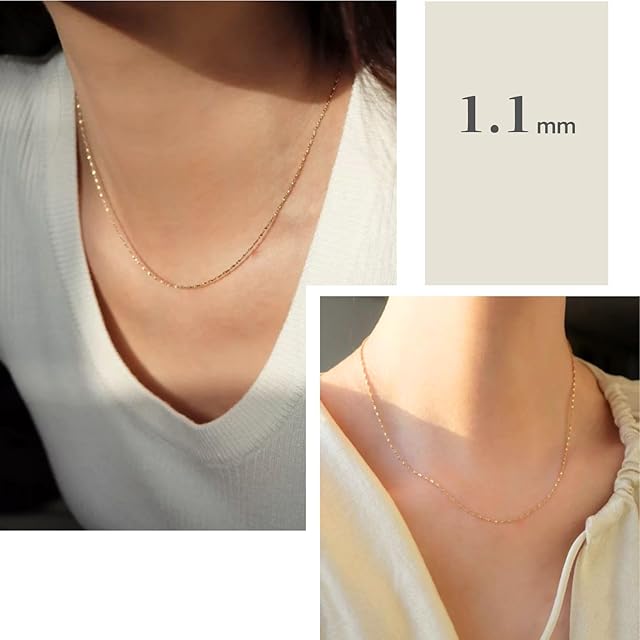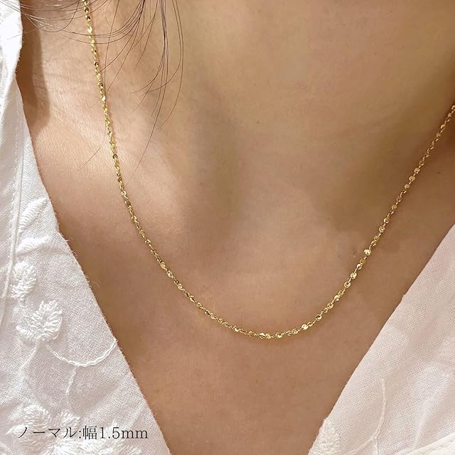 華奢なチェーンネックレスが、肌の上に繊細な陰影を描きます。 抜け感のあるデザインで、レイヤードにもおすすめのアイテム。