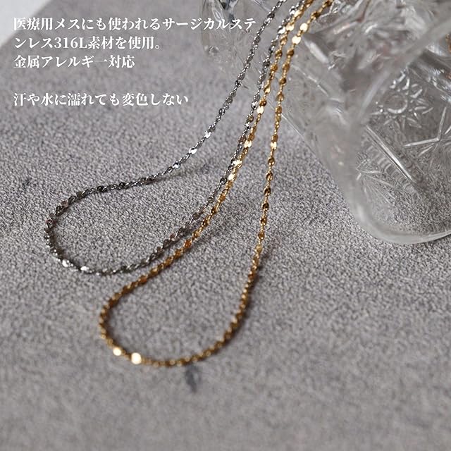 《新品未開封》[Moonstan] ネックレス チェーンネックレス レディース 人気 サージカルステンレス 金属アレルギー対応 細身 シンプル つけっぱなし (シルバー)