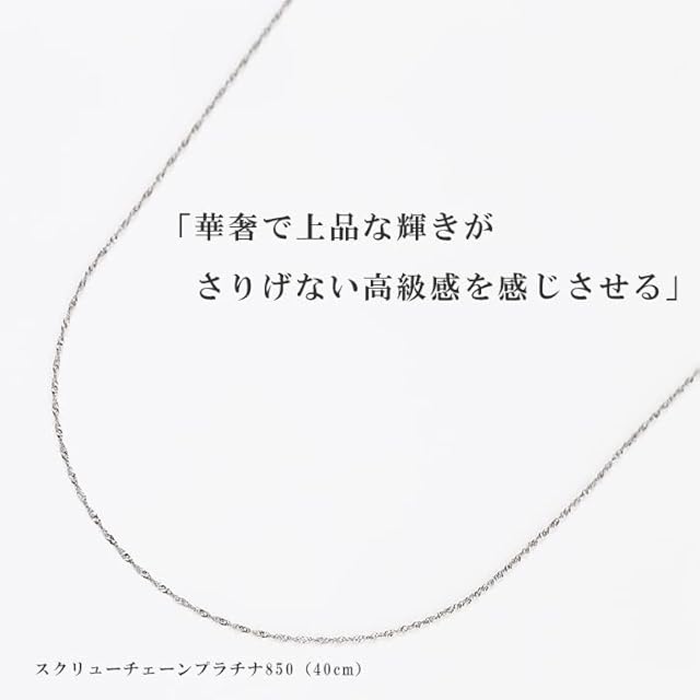 【こんなシーンに】プレゼント(お誕生日・記念日・バレンタイン・ホワイトデー・母の日・クリスマス・結婚や出産のギフト等)にも、セレモニー(卒業式・入学式等)やパーティーのコーディネートにも。特に男性から女性へ、彼女や奥様への贈り物におすすめ。定番のPt850スクリューチェーンは単品でシンプルに使用しても、お手持ちのペンダントの替えのチェーンとしても活躍します。