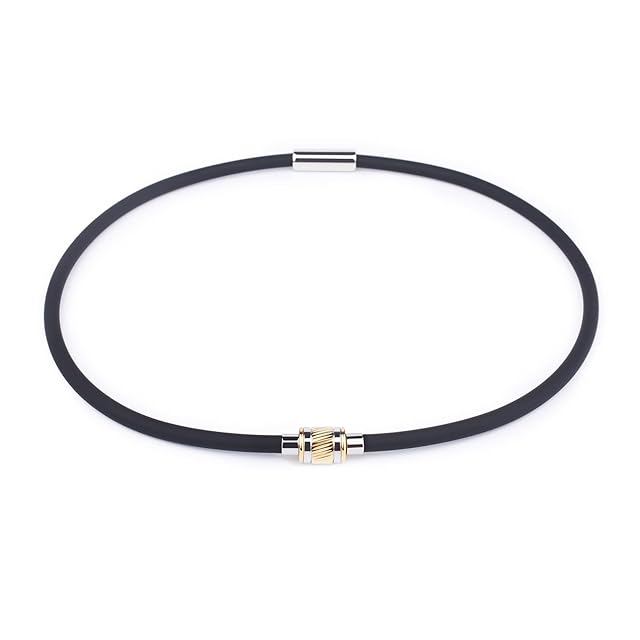 《新品未開封》[AIMEIS] ネックレス シリコン ゲルマニウム 磁気ジョイント 静電気除去 ネックレス 静電気除去グッズ 静電気防止 ステンレス ファッション 高級なデザイン 人気モデル 野球選手も多く着用 金属アレルギーフリー プレゼント用 男女兼用 【オールシーズン着用可能】 (45CM, ブラックゴールド)