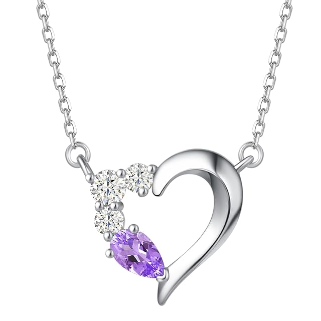 《新品未開封》[AGVANA] レディース ネックレス アメジスト 天然石 2月 誕生石 ハートネックレス プラチナ 仕上げ シルバー 女性 人気 アクセサリー 誕生日 クリスマス ホワイトデー プレゼント 綺麗な包装付き(アメジストネックレス)